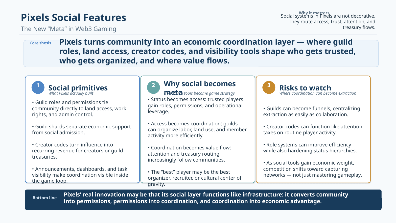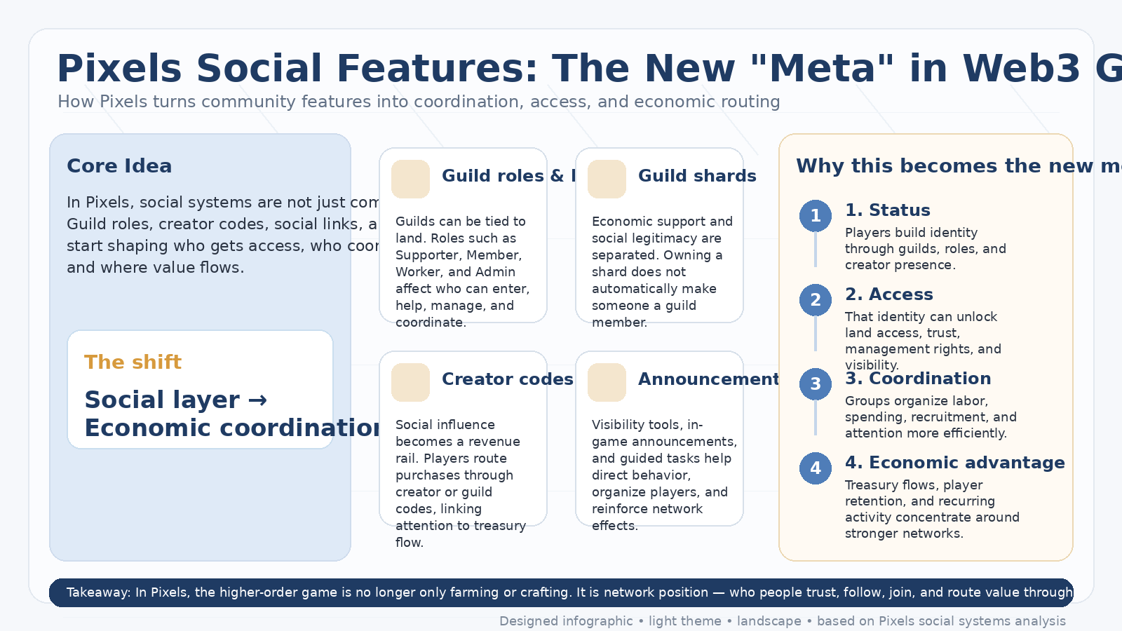 Pixels’ social features are not just extra features anymore. They increasingly look like the layer where status turns into access, access turns into coordination, and coordination turns into economic advantage. That is not a side mechanic. That is the meta.