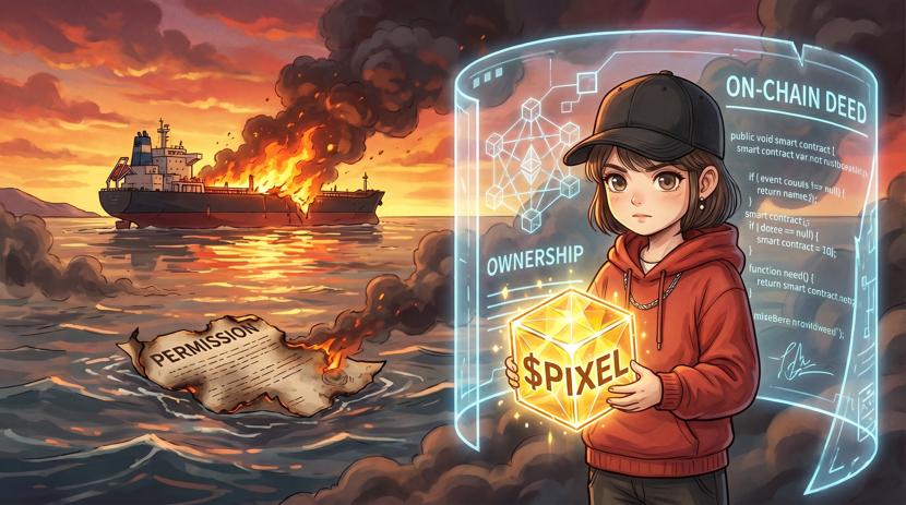 Tak jak teraz w Cieśninie Hormuz, gdy tradycyjne zezwolenia przestają być wiarygodne, jedyną prawdą jest to, co trzymasz w ręku, niezmienne prawo własności. Pixel stara się przywrócić to poczucie przynależności graczom. Przenosi to, co posiadasz, z wewnętrznej księgowości platformy na coś, co możesz trzymać i co platforma nie może łatwo zmienić. Gdy kupujesz ziemię lub mintujesz przedmioty, nie kupujesz doświadczenia, lecz cyfrowy aktyw, który możesz zabrać i wymienić.