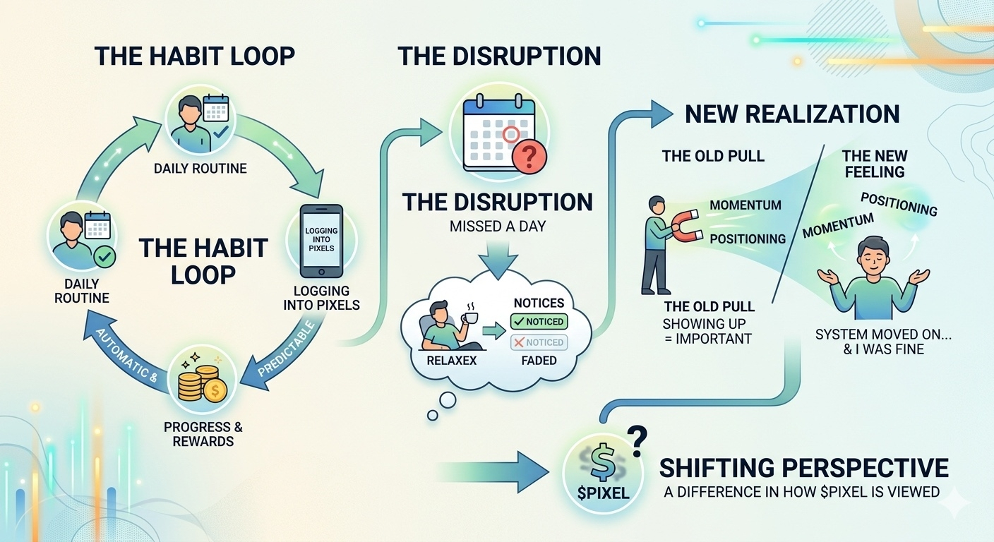 For weeks, the loop had me. It was clean, predictable, easy to maintain. Logging in felt like brushing your teeth — not exciting, but automatic. You don’t question it, you just do it.