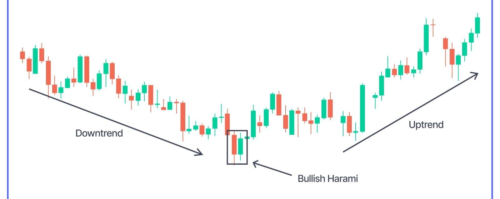 • What Bullish Harami Pattern Indicates: This pattern suggests a decrease in selling pressure and the possibility of a bullish reversal.