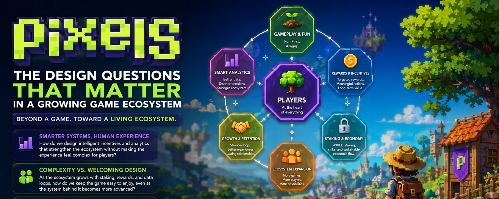 Pixels has already shown that it is willing to revisit and improve its earlier designs. Its materials talk openly about refining reward structures, improving economic loops, and building stronger connections between gameplay, retention, and participation. It has introduced ideas like smarter reward flows, vPIXEL as a spend-focused token, stronger sinks, and a broader staking model that connects games more closely to the ecosystem itself. To me, that shows movement, not stagnation. But it also means the project is still in the process of shaping something ambitious. And whenever a system wants to become more durable over time, the natural question is how those designs continue to feel as the ecosystem grows larger, adds more players, and becomes more active.