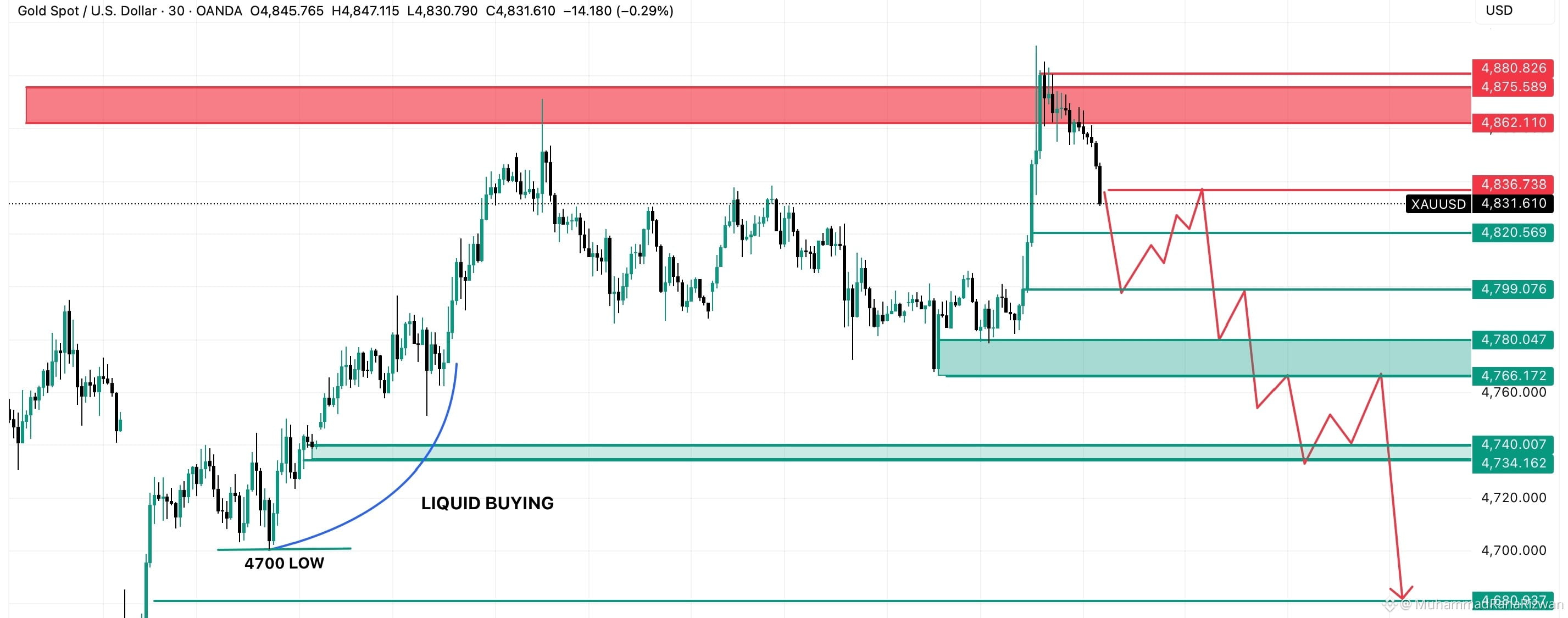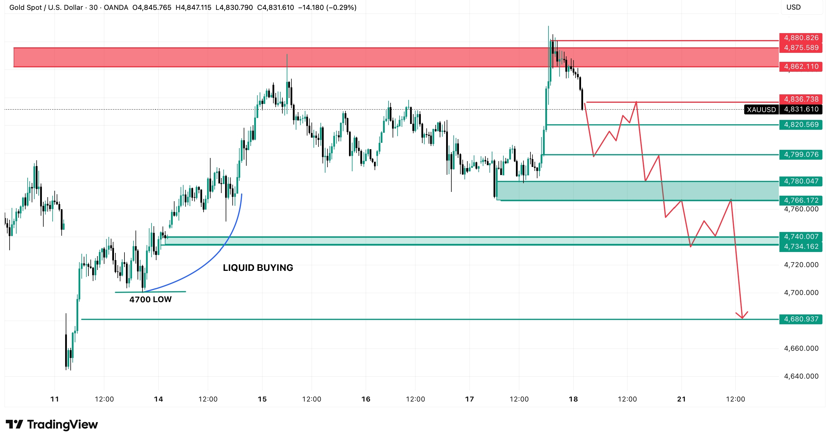 Last week, the market saw heavy buying between $4770–4810, and this zone was strongly held. But once this area breaks down this week, I expect strong selling pressure. I am also expecting a breakdown of $4700.