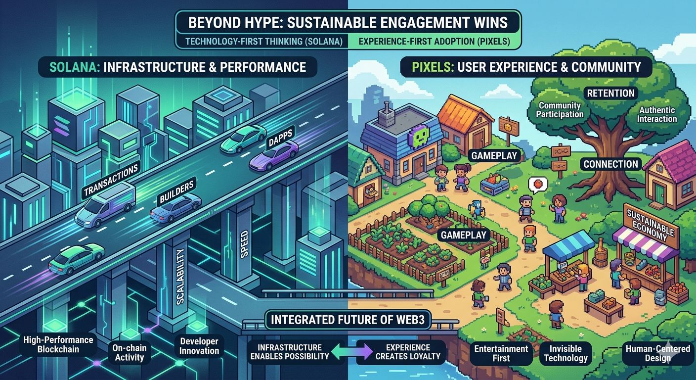 Perhaps the real story is not Solana versus Pixel at all. It is the transition from technology first thinking to experience first adoption. The future of Web3 may belong to platform that combine powerful infrastructure with human centered designs where innovation become invisible and participation feel natural.