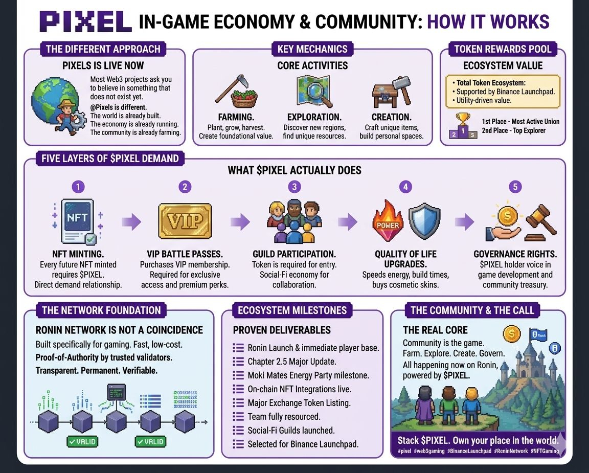 Five separate reasons for a player to hold $PIXEL. Five separate demand drivers that exist simultaneously inside a single live ecosystem. That is not common in Web3 gaming. That is what makes the $PIXEL token economy structurally different from single-use game currencies that inflate and collapse.