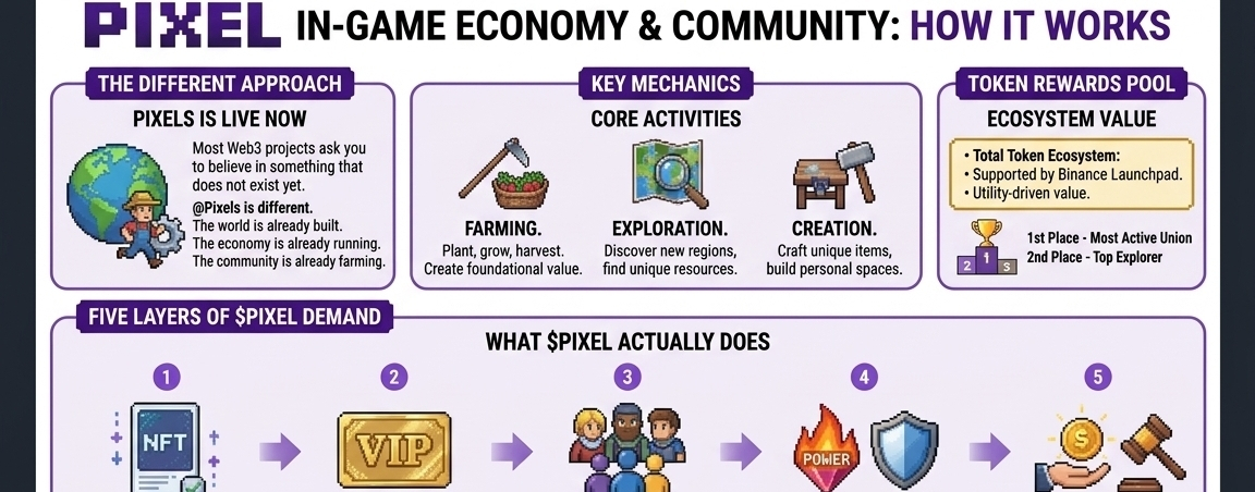 Most Web3 projects ask you to believe in something that does not exist yet. @Pixels is different. The world is already built. The economy is already running. The community is already farming.