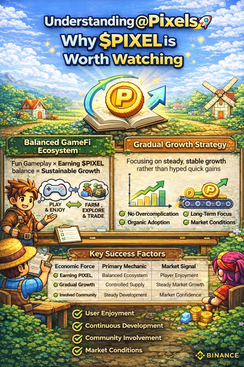 Jednym z najważniejszych czynników w każdym projekcie GameFi jest zrównoważony rozwój. Wiele platform zaczyna z dużym hype'em, ale nie udaje im się utrzymać zainteresowania użytkowników w dłuższej perspektywie. W przypadku $PIXEL wydaje się, że skupienie jest nieco inne. Zamiast polegać głównie na krótkoterminowym podekscytowaniu, projekt wydaje się dążyć do stopniowego i stabilnego wzrostu.