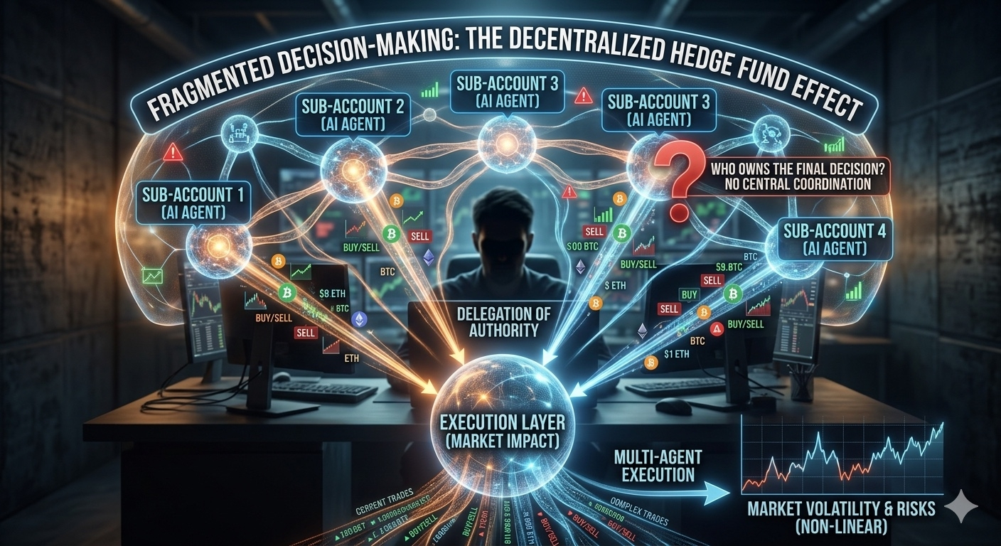 Sub-account là đơn vị phân mảnh. AI là đơn vị tự động hóa. Prompt là đơn vị logic. Khi ba yếu tố này kết hợp, chúng tạo ra một cấu trúc giống hedge fund. Nhưng cấu trúc đó không có CIO, không có risk committee và không có lớp chịu trách nhiệm cuối cùng.