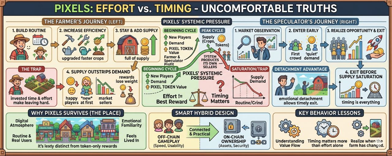 And maybe that is the real lesson here. The best systems are rarely the purest ones. They are the ones that understand human behavior the best. Pixels taught me that effort alone does not guarantee advantage. Timing matters. Detachment matters. Understanding how value flows matters.