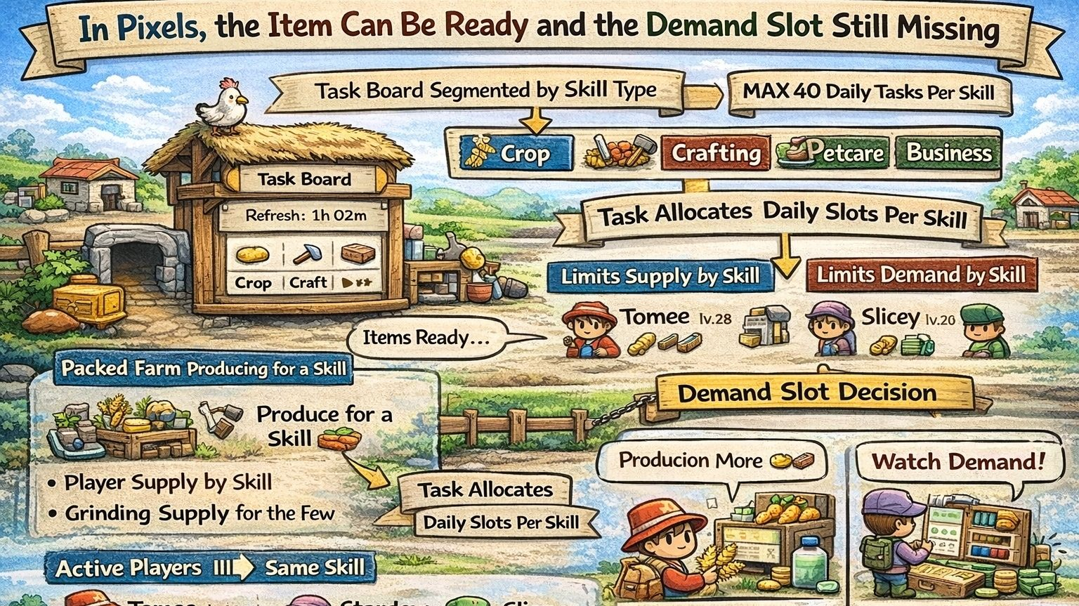 If Pixels keeps using the Task Board this way, skill value will not be decided only by what players can make. It will be decided by how much demand the system lets that skill receive. And that means the player who understands demand slots may beat the player who only understands production.