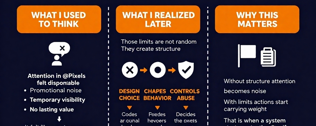 Nie sądzę, że Pixels staje się bardziej przemyślane tylko dlatego, że posiadane grunty mają lepsze nagrody. Wiele projektów może to zrobić. To, co czyni je dla mnie ciekawszym, to to, że system wydaje się rozumieć, że własność powinna być potężna, nie sprawiając, że dostęp wydaje się bezsensowny. To jest trudniejsza równowaga do osiągnięcia. A kiedy patrzę na strukturę gruntów przez ten pryzmat, Pixels przestaje wydawać się światem stworzonym tylko dla ludzi, którzy już posiadają najwyższy zasób.