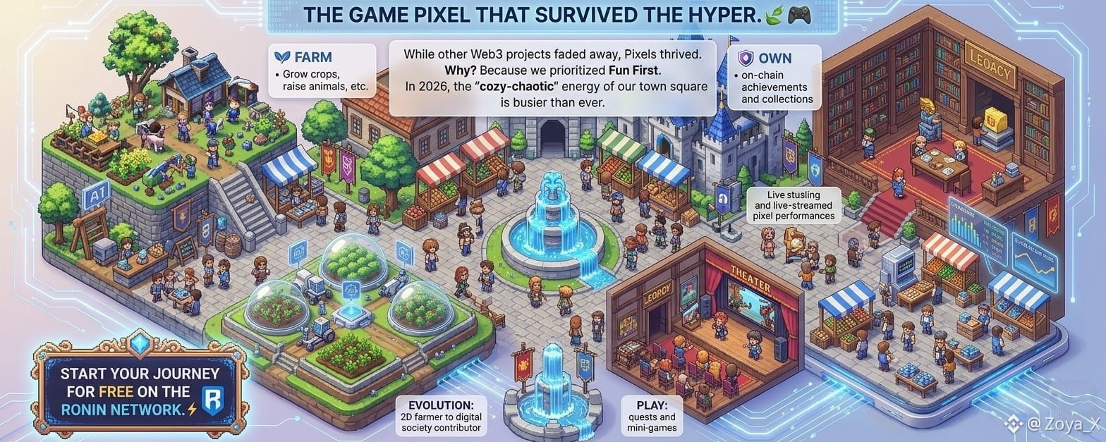 Gaming ki duniya hamesha se badalti rahi hai lekin pichle kuch saalon mein Web3 gaming ne ek naya inqalab laya hai. Jab zyada tar blockchain projects hype ke baad khatam ho gaye tab ek game ne na sirf survive kiya balki thrive bhi kiya aur wo hai Pixels. Is image ko dekh kar hi samajh aata hai ki yeh sirf ek game nahi, balki ek digital society Hai.