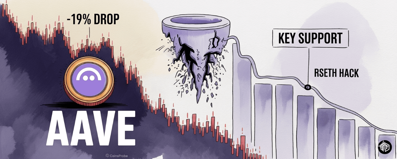 Aave fell sharply after a $294M rsETH exploit linked to Kelp DAO triggered panic and massive withdrawals.