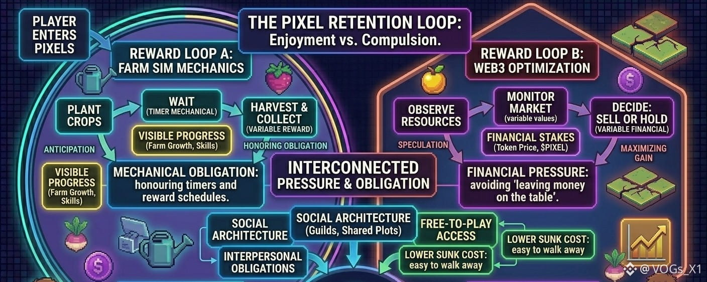 But Pixels stacks a Web3 layer on top of that. Now, you aren’t just waiting on crops; you’re parallel-tracking token prices and resource values. You’re constantly wondering if today is the day to sell or hold. Having two of these psychological loops running at the same time is a lot of headspace for one game to take up