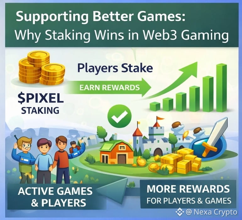 مشروع @Pixels يُعد من أبرز المشاريع التي نجحت في الدمج بين عالم الألعاب وتقنية البلوكشين بطريقة ذكية وعملية. ما يلفت الانتباه في هذا المشروع هو أنه لا يعتمد فقط على فكرة اللعب من أجل الترفيه، بل يضيف بُعدًا اقتصاديًا حقيقيًا من خلال منظومة Staked التي تمنح حاملي $PIXEL فرصة الاستفادة من التوكن على المدى الطويل. هذه المنظومة تعزز من قيمة المشاركة داخل النظام، حيث يصبح المستخدم جزءًا من اقتصاد اللعبة وليس مجرد لاعب عابر.