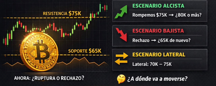 * Bitcoin está moviéndose aprox. en la zona de 70K–75K USD