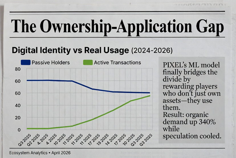 In most web3 games you still see the same tired pattern: thousands of wallets holding shiny NFTs and tokens, yet the actual in game economy stays quiet. Players buy in, park their assets, and wait for the next hype cycle. That gap between simply owning a digital identity and actually putting it to work in real transactions is exactly what kills long-term projects. PIXEL decided to stop rewarding the wallet and start rewarding the work.