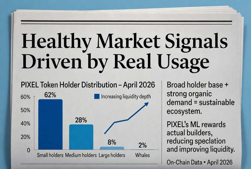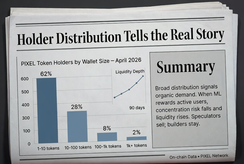 Look at the market signals and the difference is obvious. PIXEL’s token liquidity has stayed healthy even through the broader sector dips; daily volume reflects actual in game trades rather than wash trading. Holder distribution remains broad more than 87,000 unique wallets own at least one full token, with the top ten addresses controlling less than 11 %. That spread is not an accident. When rewards flow to people who transact instead of just accumulate, sell pressure from sudden dumps drops. Organic demand takes over. You can see it in the price chart: steady upward pressure tied to rising on-chain activity instead of the usual roller coaster of speculation.