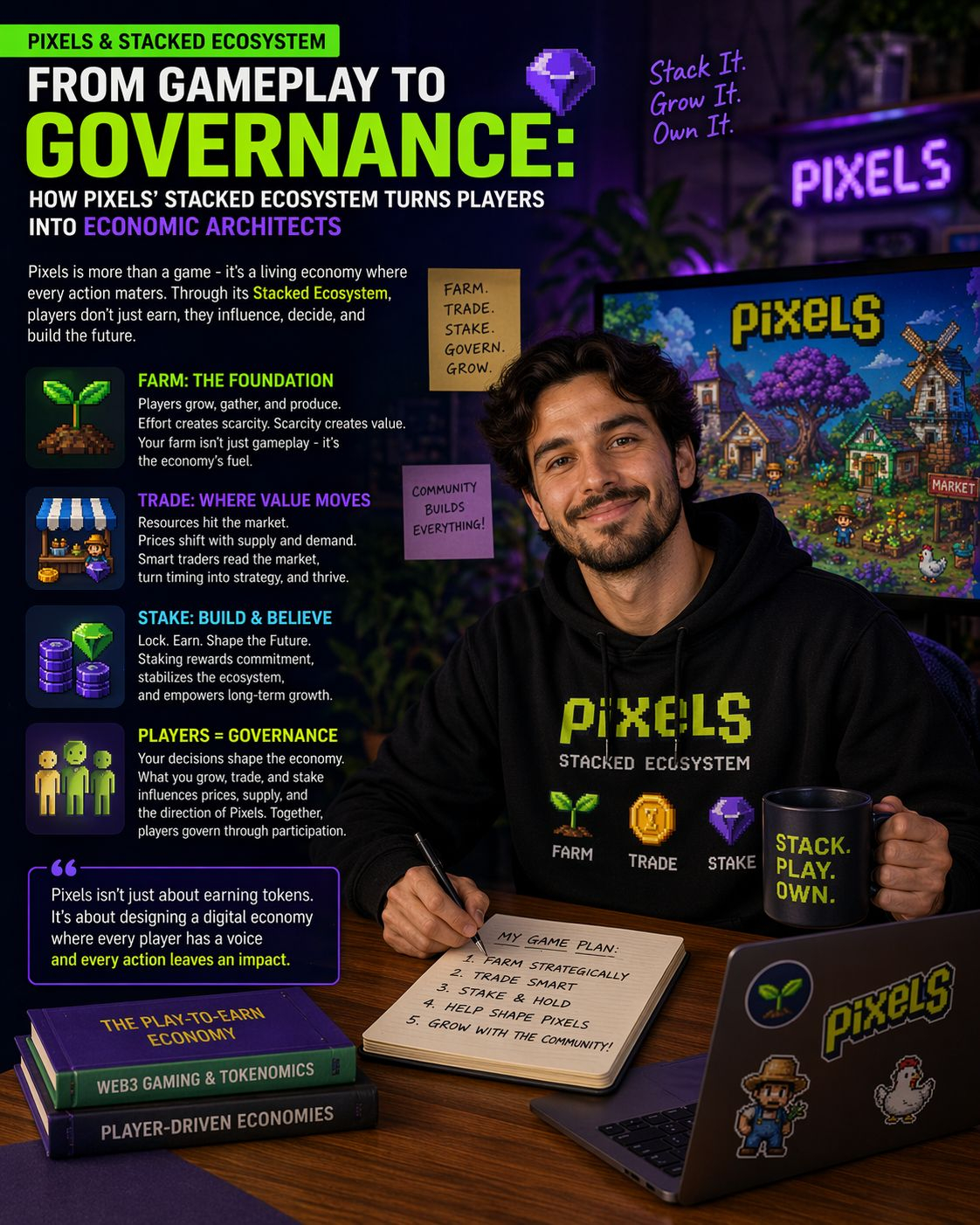 As the ecosystem matures, this stacked design could become a blueprint for future Web3 games. Instead of isolated mechanics, we’ll likely see more interconnected systems where gameplay, economy, and governance merge seamlessly. Pixels is already demonstrating that when players are given real economic roles, engagement deepens and sustainability improves.