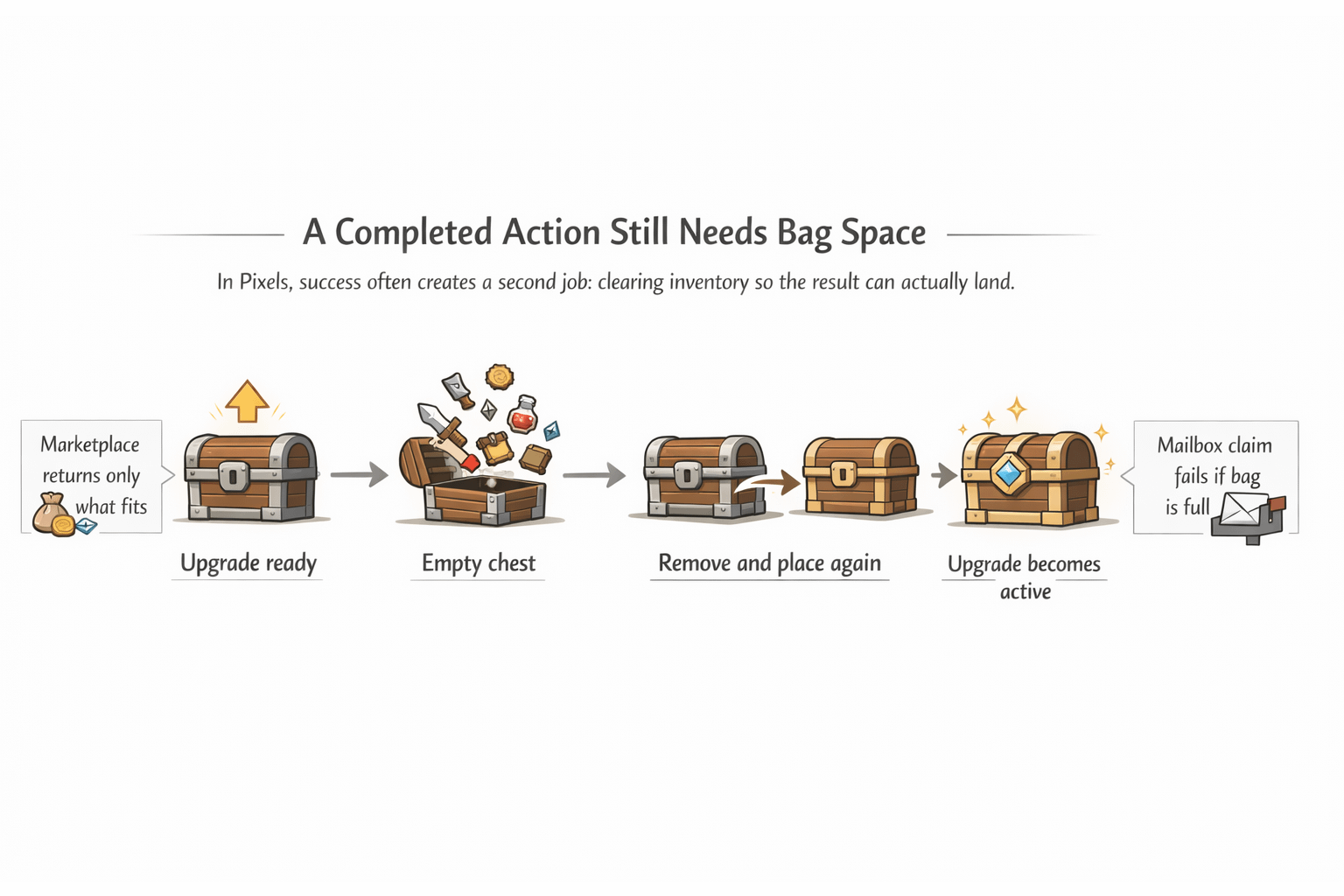 So now I’m checking my bag before I do basically anything because I don’t trust the game anymore, and that’s just stupid. I should not have to stop and play backpack janitor every five minutes because Pixels loves turning simple actions into extra chores.