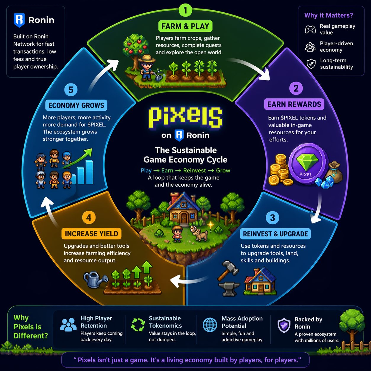 I have been watching Pixels on Ronin for a few weeks, not just the price chart because charts can fake strength short term. I mean actual player behavior, wallets, how often people come back, what they do inside the game. And the weird part is… it’s not dying after the hype phase. That alone already puts it ahead of most Web3 games. Usually it’s the same story every time. Token launches, hype kicks in, price pumps, people farm rewards, dump everything, and move on. I’ve literally traded that cycle myself more than once. Quick entries, quick exits, no attachment. But Pixels doesn’t feel like that type of setup.