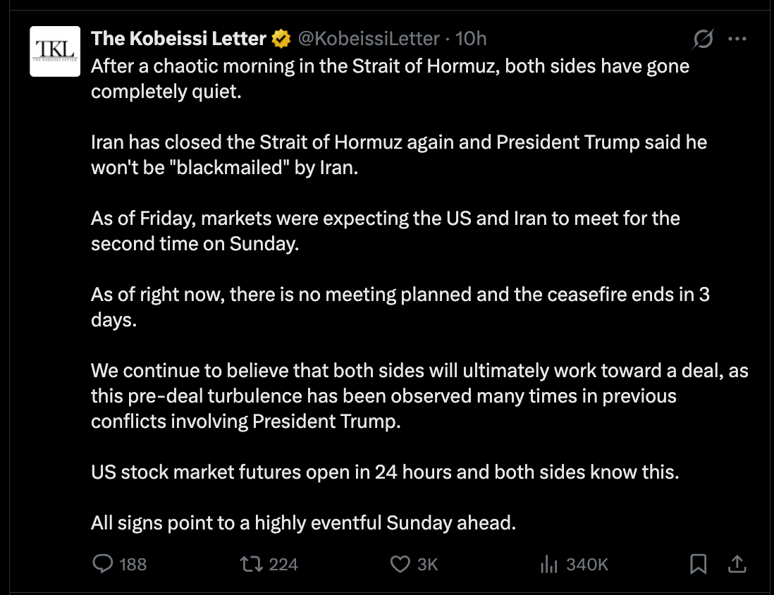 On Saturday, Iran’s military announced the closure of the Strait of Hormuz again, with reports suggesting at least three attacks on commercial ships along the waterway. After President Trump’s several announcements going into the weekend, the Iranian Speaker of the Parliament, Mohammad Ghalibaf, said the US president made “seven claims in one hour, all seven of which were false.