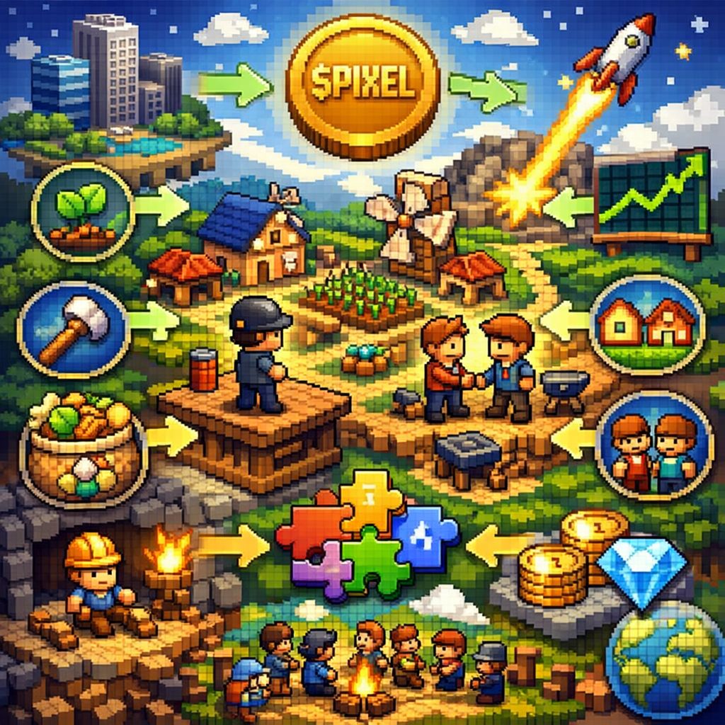 At the center of everything is $PIXEL, the main utility behind the experience. Instead of scattered systems, everything flows through one core asset: