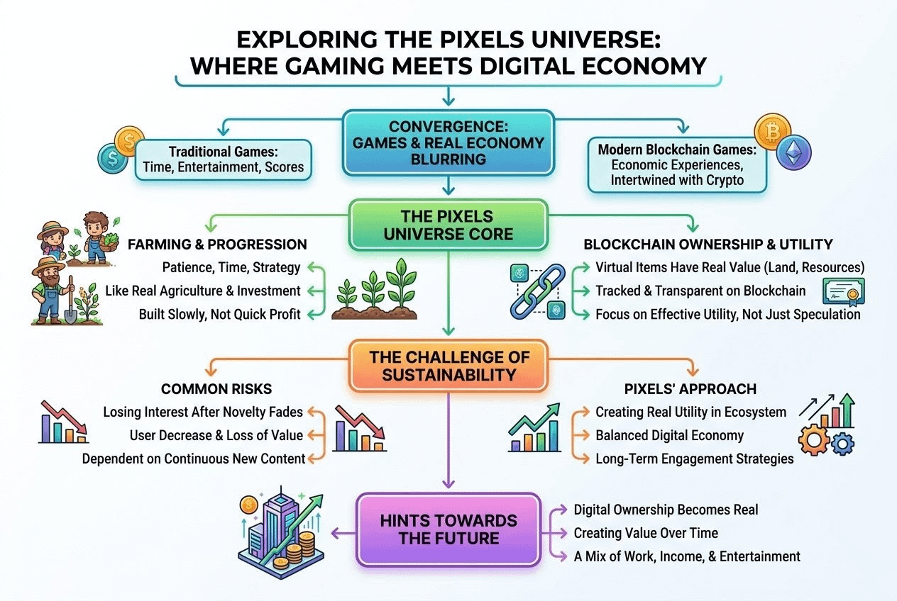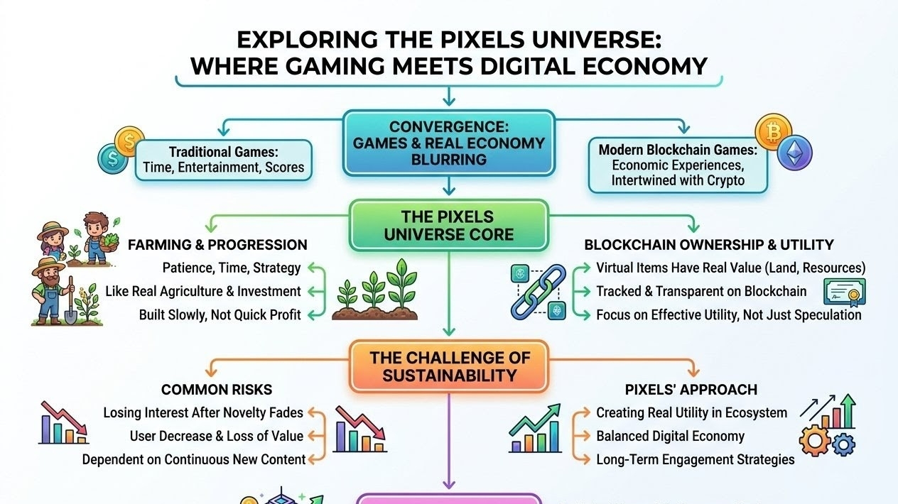 I think the line between games and real economy is getting more and more blurred in this digital world..👀 Earlier games were just about passing time, entertainment and increasing scores. But today when I delved a little deeper into the Pixels universe. It seemed like it was not just a game, it was a new kind of economic experience where farming, ownership and crypto are intertwined...👀