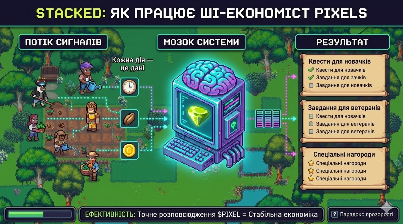 Для $PIXEL це все має конкретний вимір. Чим точніше система підбирає нагороди - тим менше токенів витрачається даремно на гравців, яким вони все одно не потрібні. Менше безглуздої емісії означає менший тиск на курс. Це теоретично. Чи підтверджується практикою - побачимо по тому, як поводитиметься токен у наступні місяці після масштабування Stacked на зовнішні студії.