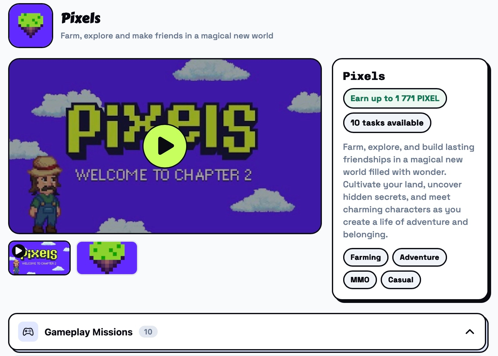 Коли ти граєш у Pixels, кожна твоя дія відправляє сигнал у систему. Посадив культуру - сигнал. Продав ресурс - сигнал. Зайшов у гру о 9 ранку і вийшов через 45 хвилин - теж сигнал. Накопичивши тисячі таких точок по мільйонах гравців, Stacked починає бачити патерни. Хто грає вранці, хто ввечері. Хто фармить і одразу продає, хто накопичує. Хто реагує на завдання з $PIXEL нагородою, а хто ігнорує. Потім все це відображається в дашборді гравця на https://app.stacked.xyz/ в вигляді персоналізованих місій (ось у мене їх зараз 10):
