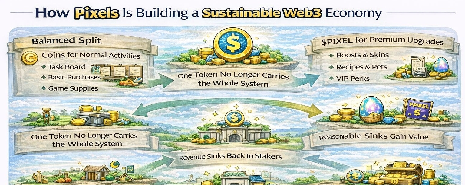 The token system is part of that same structure. In many crypto projects, the token is treated like the main story, but in Pixels it works more like the accounting layer beneath the story. It helps define what gets rewarded, what costs something, and what kind of activity the world wants to encourage. The project has already had to adjust its economy, which tells us something important. A game economy is not stable just because it has a token. It must manage inflation, preserve meaning, and keep rewards connected to real participation. Pixels shifted away from its older soft currency model because that system was becoming hard to control. That change is not a side note, it is one of the clearest signs that the team understands the difference between short term activity and long term economic health.
