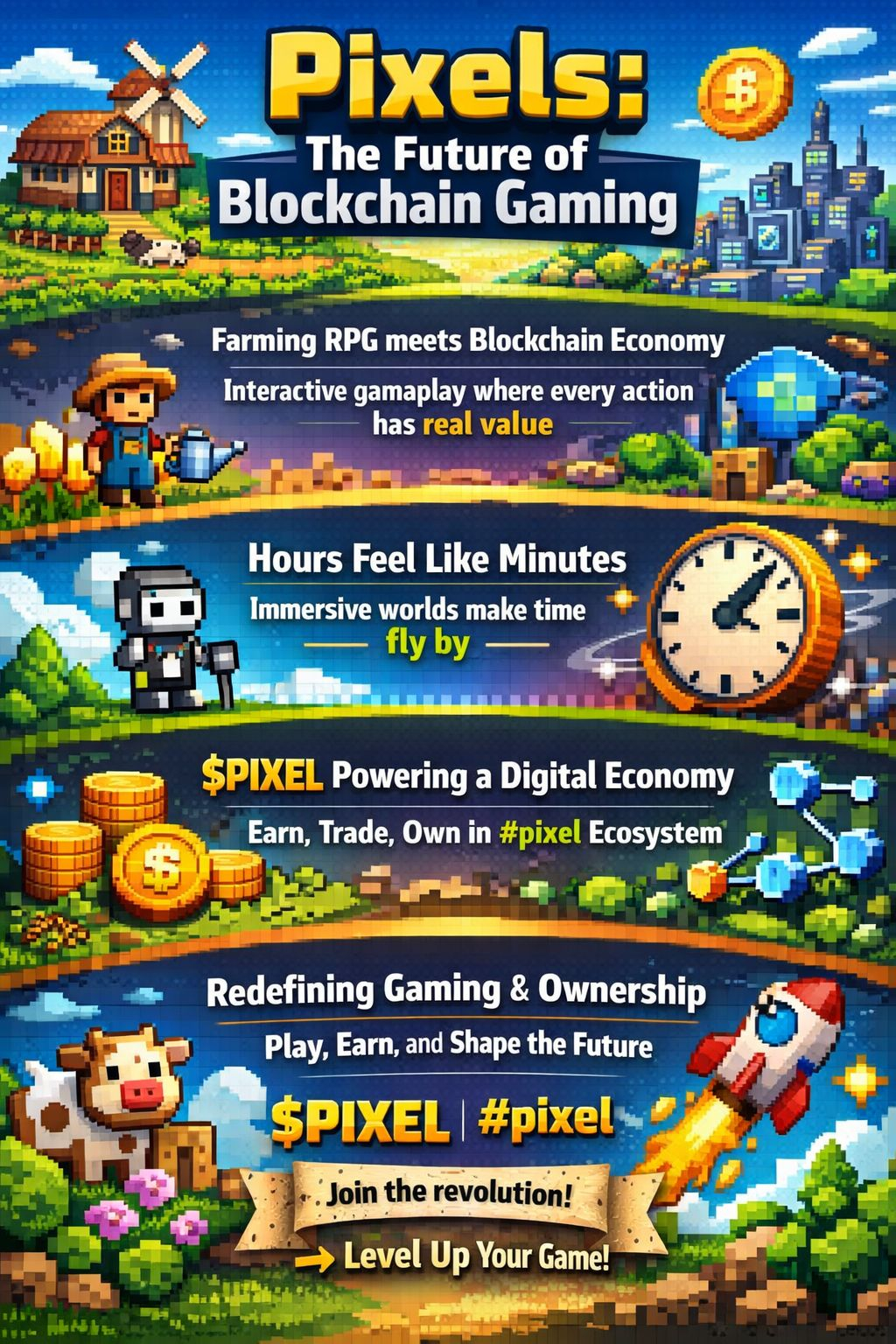 Overall, Pixels represents how gaming, blockchain, and smart ecosystem design can merge into a new digital lifestyle where time feels faster, but productivity and engagement are higher than ever!