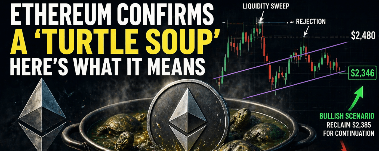 According to market analyst TheChartWhisperr, Ethereum has just confirmed a “Turtle Soup” pattern — a setup often linked to false breakouts followed by sharp reversals or strong continuation moves.