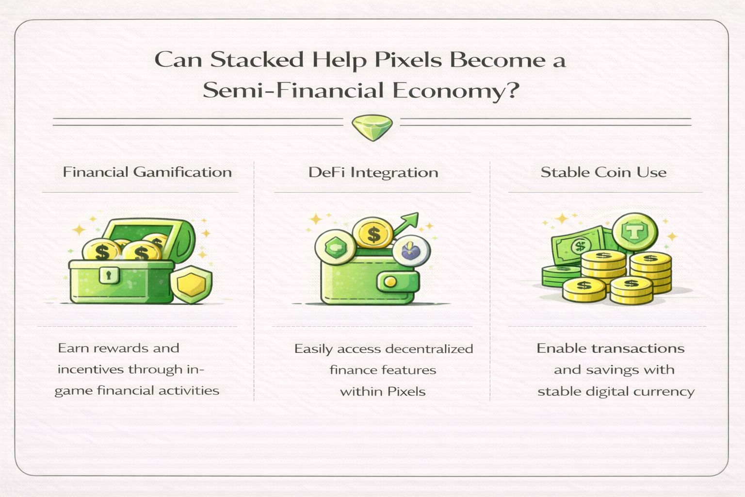 Và câu hỏi mình tự đặt ra là: nếu Stacked tiếp tục phát triển đúng hướng, liệu Pixels có thể trở thành một nền kinh tế mang tính bán tài chính hay không.