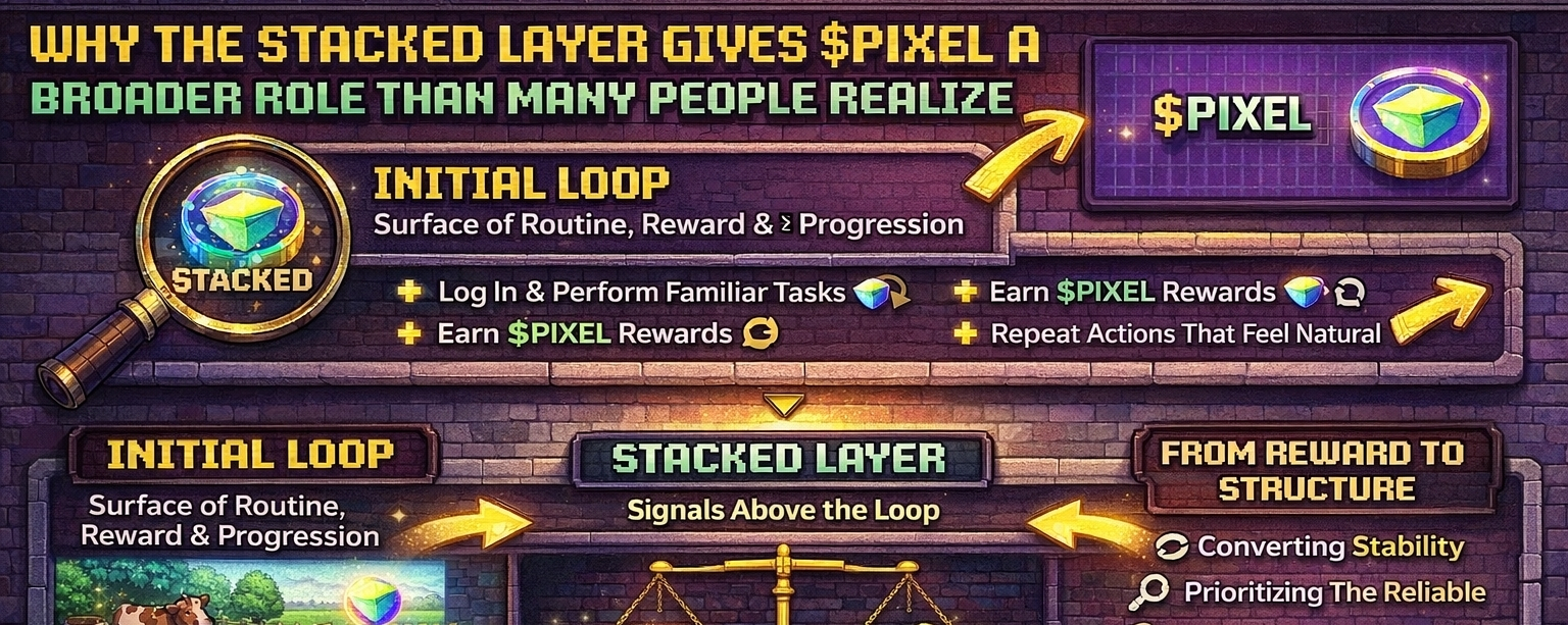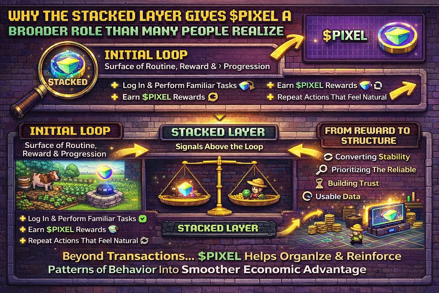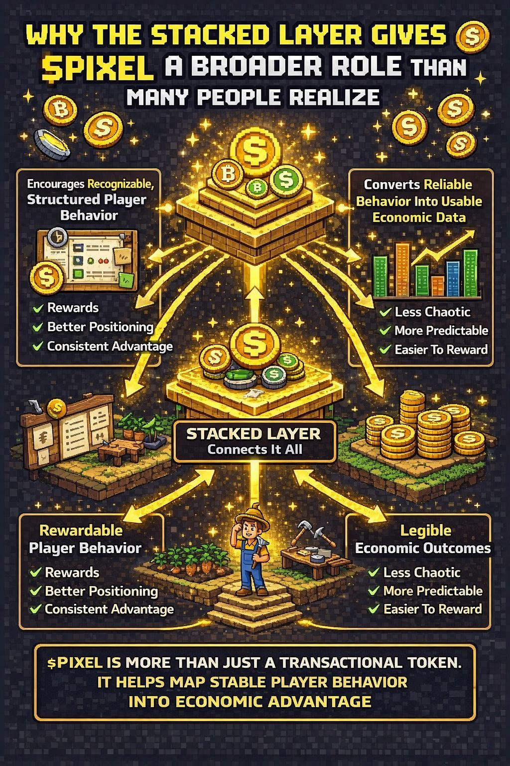That changed how I began thinking about PiXEL. It started making less sense to me as a simple reward token and more sense as part of a wider layer that helps organize behavior. The interesting question stopped being how much activity gets rewarded and became something more structural: what kind of activity becomes legible enough to be treated as valuable over time.That is where the Stacked layer starts to matter more than many people realize. Once I began looking at Pixels through that lens, Stacked stopped feeling like a side feature attached to the economy. It started feeling more like an interpretive layer sitting above player behavior, helping the system decide which forms of engagement deserve reinforcement, continuity, and economic weight.