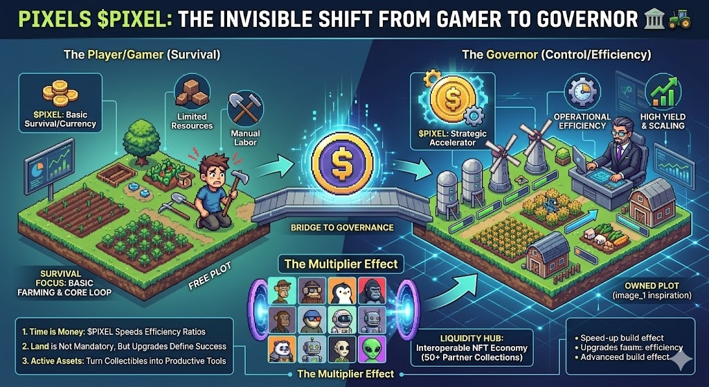 Most players start as "Gamers," focusing on daily tasks and immediate harvests. But the system is designed to reward the "Governors"—those who understand that $PIXEL is a tool for long-term control, not just a token to sell.