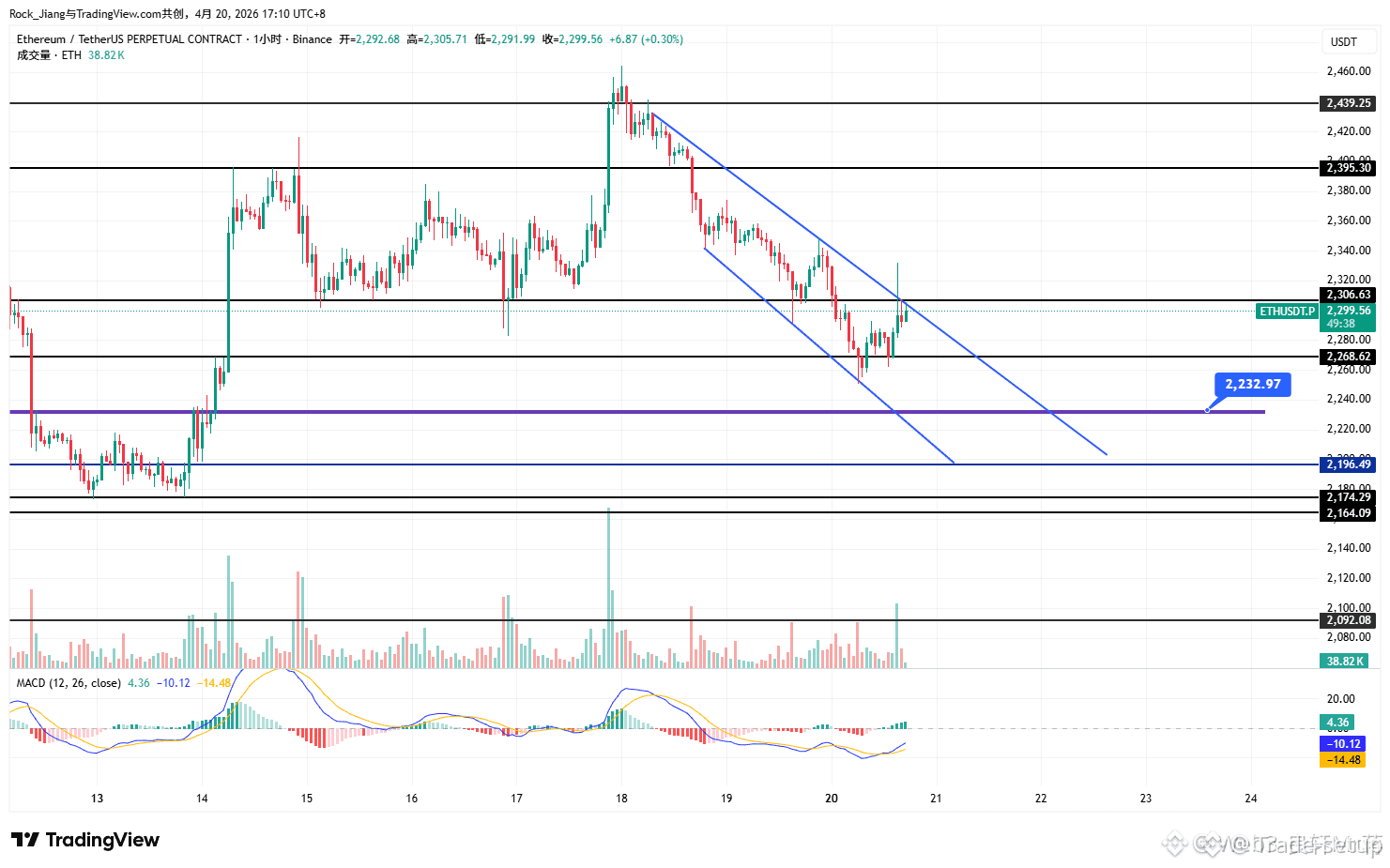 ETH is currently trading inside a descending wedge channel, with 2232 acting as the previous strong support level.