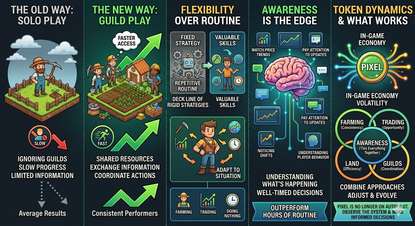 One of the biggest changes in Pixels is the decline of rigid strategies.