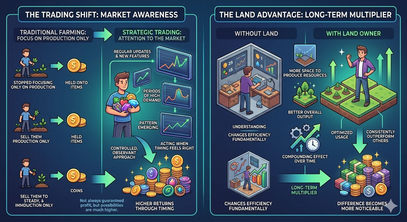 Some resources would suddenly increase in value. Others would stay flat for long periods. Occasionally, demand would spike after updates or new features were introduced. These moments created opportunities that farming alone could never match.