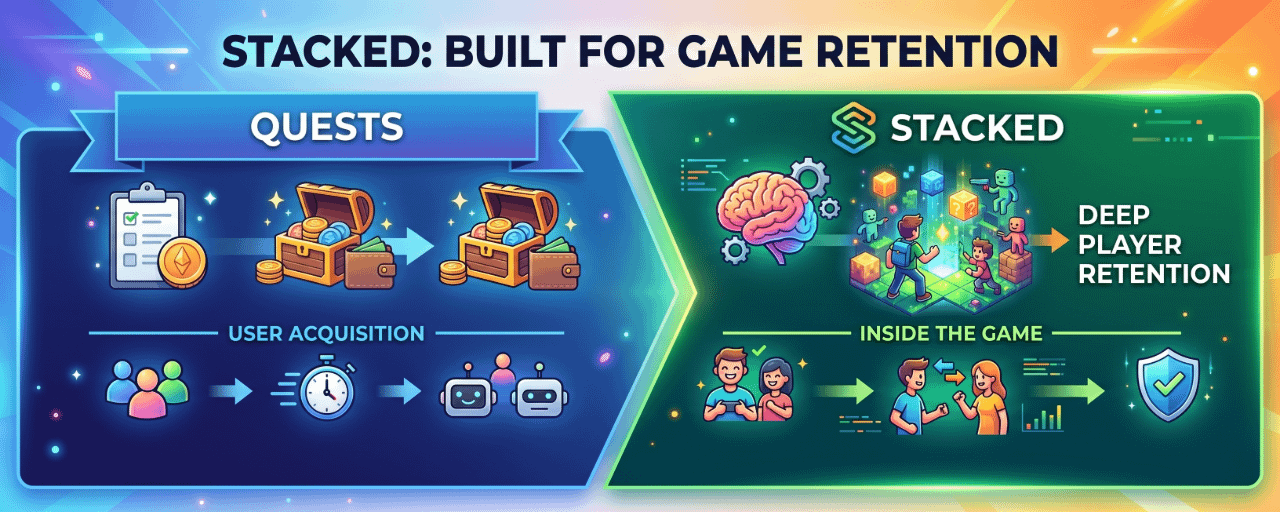 Stacked został zbudowany dla czegoś, co dzieje się po akwizycji. Co sprawia, że gracz loguje się czternastego dnia. Dlaczego kohorta, która wydawała się zaangażowana siódmego dnia, cicho zniknęła do trzydziestego dnia. Która nagroda w którym momencie faktycznie zmieniła zachowanie w porównaniu do której, która tylko generowała aktywność, która wyglądała dobrze w raporcie.