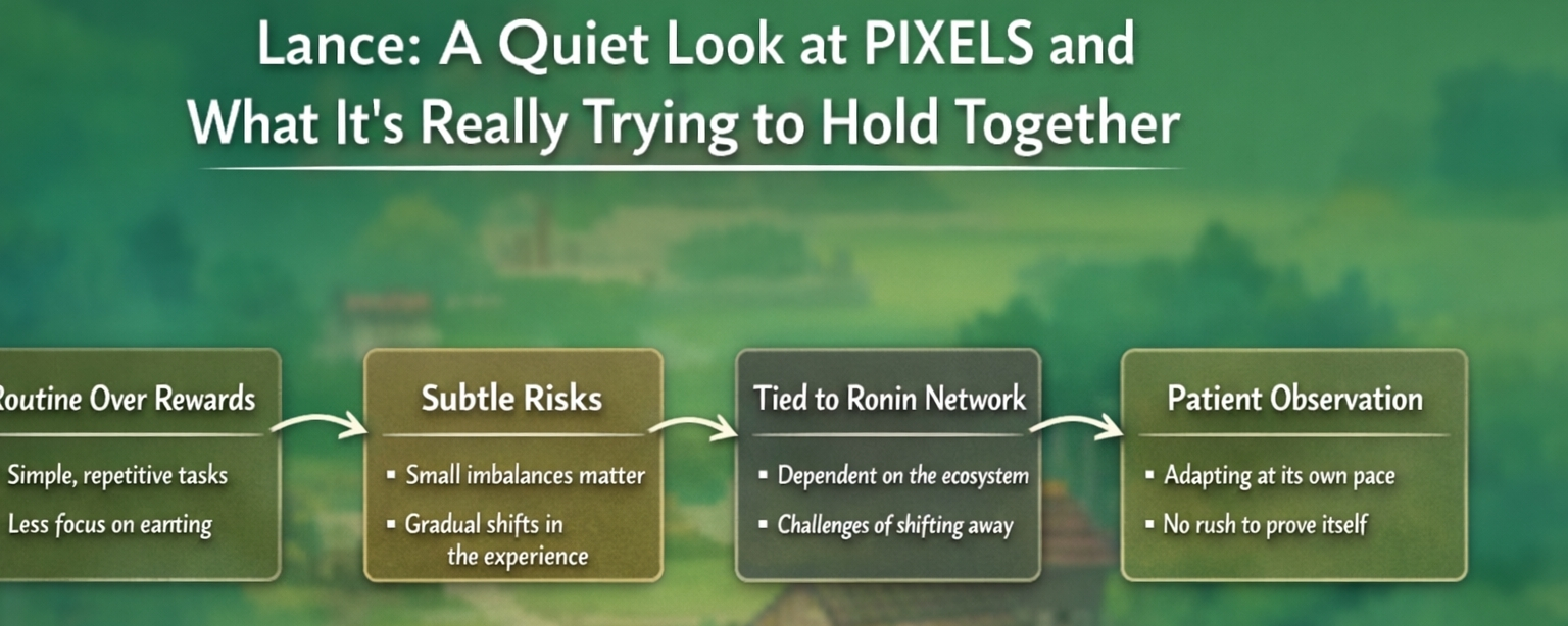 Pixels looked like something I already understood before even touching it. A farming loop, a shared world, a token somewhere underneath holding it all together. I’ve seen that structure enough times to know how it usually goes. It starts simple, builds momentum, and then slowly turns into something driven more by extraction than experience.