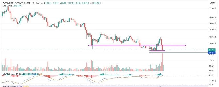 Técnicamente, la cosa está color de hormiga. AAVE está atrapado por debajo de los $100, y lo que antes era un piso firme donde podíamos apoyarnos, ahora es un techo pesado que no nos deja subir. Si no logramos defender la zona crítica entre los $88 y $92, prepárense, porque el siguiente escalón está en los $85, y de ahí a los $80 no hay nada que lo detenga. Los indicadores como el RSI y el MACD están perdiendo fuerza más rápido que un corredor sin oxígeno, confirmando que este "rebotito" podría ser la famosa trampa para toros: te hacen creer que vamos a la luna para que entres y luego te usan de liquidez. 🛑