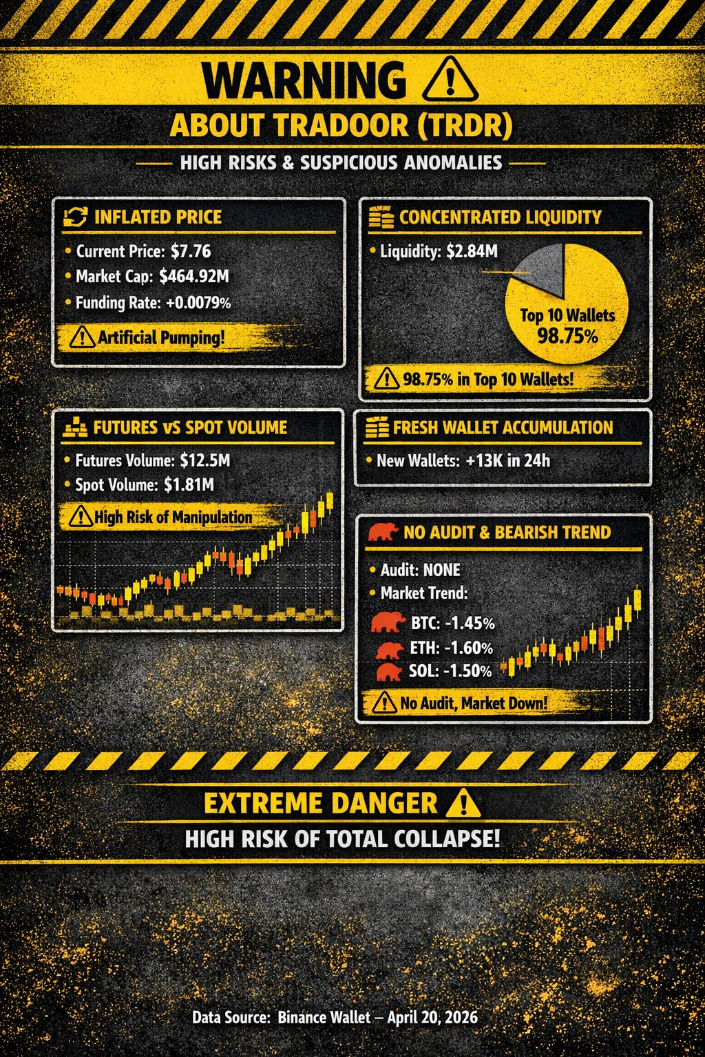 Tutti i dati attuali — Binance + MEXC — indicano che TRADOOR è in una fase di pump artificiale.