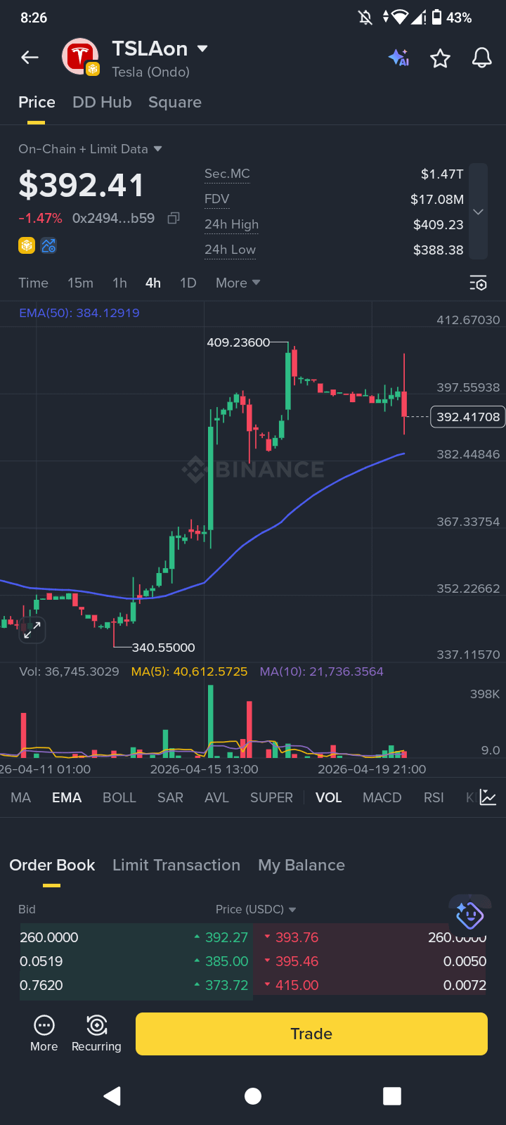 ➤ TSLAON = Ondo Finance’s tokenized Tesla exposure