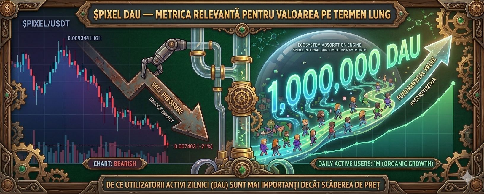 Pixels are 1 milion de utilizatori activi zilnic fara sa cheltuiasca bugete masive de marketing. creste organic prin mecanici de joc si comunitate. asta are valoare fundamentala reala independenta de pretul tokenului.