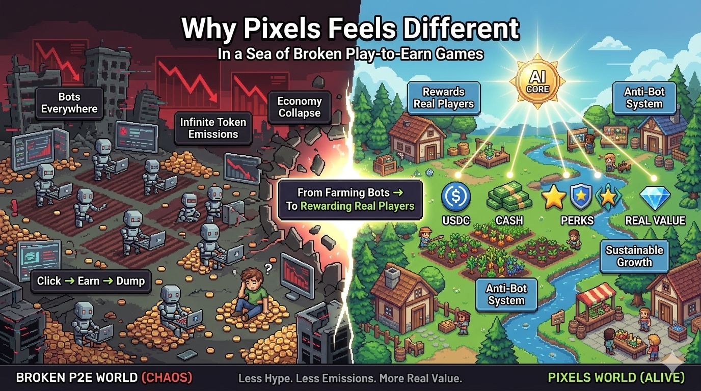 W Pixels ziemia wydaje się bardziej kontrolą niż własnością.