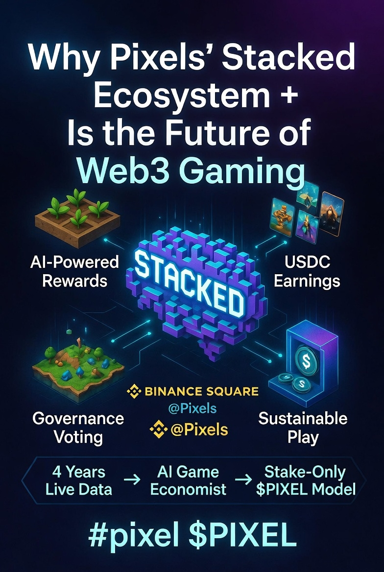 The Pixels project continues to lead the charge in building a real, long-term Web3 gaming economy, and their latest breakthrough—Stacked—is proof that the vision is working. @Pixels has taken four years of live player data from their flagship game and turned it into something revolutionary: Stacked, an AI-powered rewards and engagement platform that goes far beyond simple play-to-earn mechanics. For players, Stacked acts as a single, seamless rewards hub. Whether you’re farming in the original Pixels world, exploring Pixel Dungeons, or jumping into new titles joining the ecosystem, your efforts are tracked intelligently and rewarded efficiently. No more fragmented experiences or wasted time switching between apps.