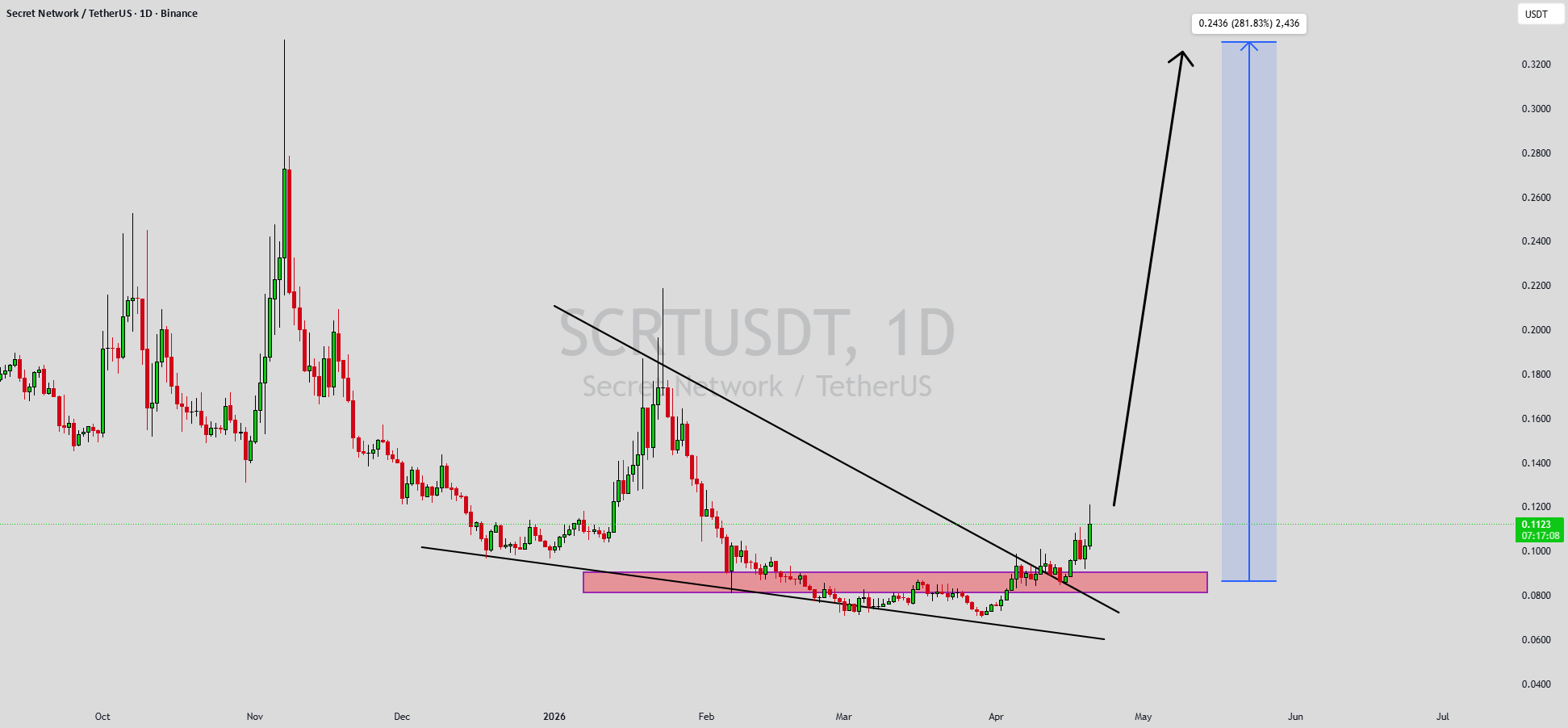 SCRTUSDT يشكل نمط زخم صعودي واضح، وهو إشارة عكسية صعودية كلاسيكية تشير غالبًا إلى اختراق قادم. لقد كانت الأسعار تتماسك ضمن نطاق يتقلص، مما يشير إلى أن ضغط البيع يضعف بينما يبدأ المشترون في استعادة السيطرة. مع حجم ثابت يؤكد التراكم عند المستويات الأدنى، تشير الإعدادات إلى احتمال حدوث اختراق صعودي قريب. يمكن أن يؤدي التحرك المتوقع إلى مكسب مثير للإعجاب يتراوح بين 240% و 250% بمجرد أن تتجاوز الأسعار مقاومة الوتد.