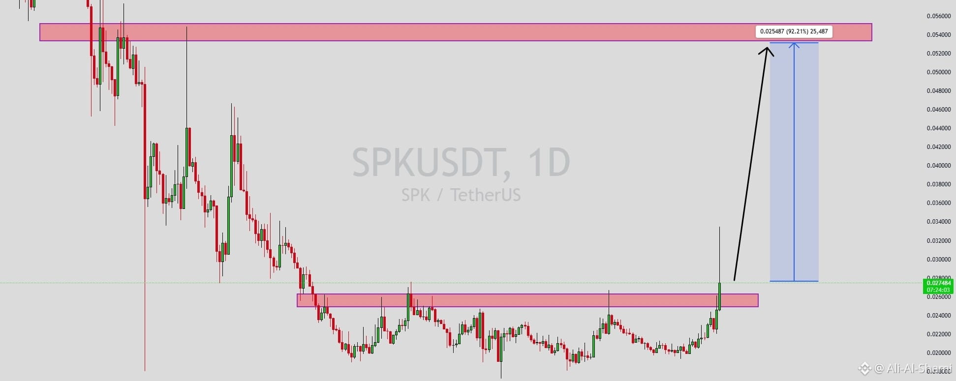 نمط الزخم الصعودي هذا يُرى عادةً في نهاية الاتجاهات النزولية أو المراحل التصحيحية، ويمثل تحولًا محتملاً في مشاعر السوق من الهبوط إلى الصعود. المتداولون الذين يراقبون SPKUSDT عن كثب يلاحظون الزخم المتزايد مع اقترابه من منطقة الاختراق. حجم التداول الجيد يضيف الثقة إلى هذا النمط، مما يُظهر أن المشاركين في السوق يتخذون مواقع مبكرًا في انتظار حدوث انقلاب.