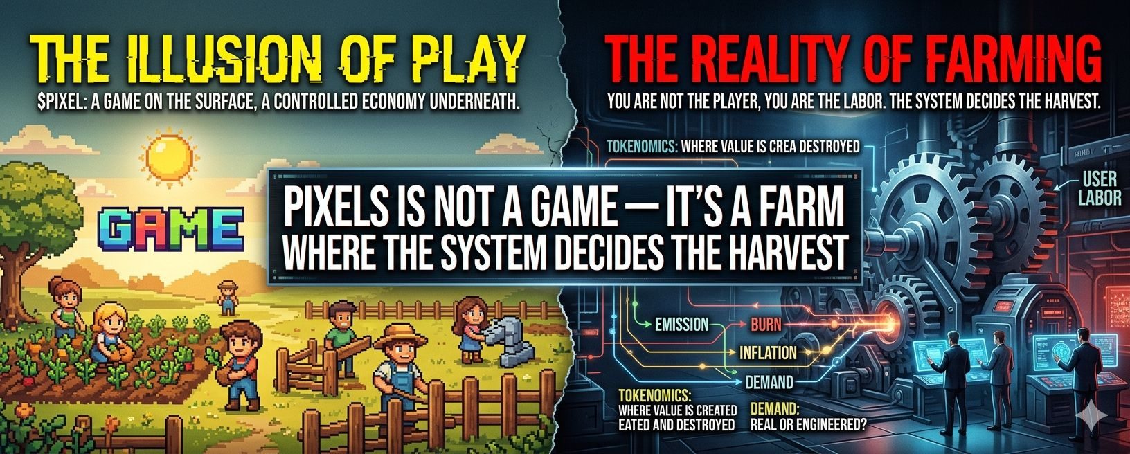 On the outside, Pixels looks harmless — farming crops, crafting items, socializing, building land. It feels slow, nostalgic, almost peaceful.