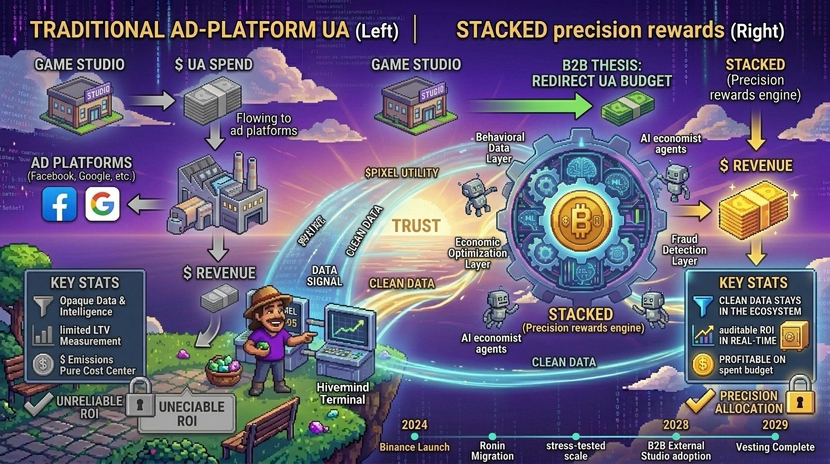 That’s the moat. Not the AI layer — any team can build an AI layer. Not the targeting logic — the algorithms are known. The moat is the operational knowledge embedded in four years of live experimentation inside one of the most active Web3 gaming ecosystems ever built.